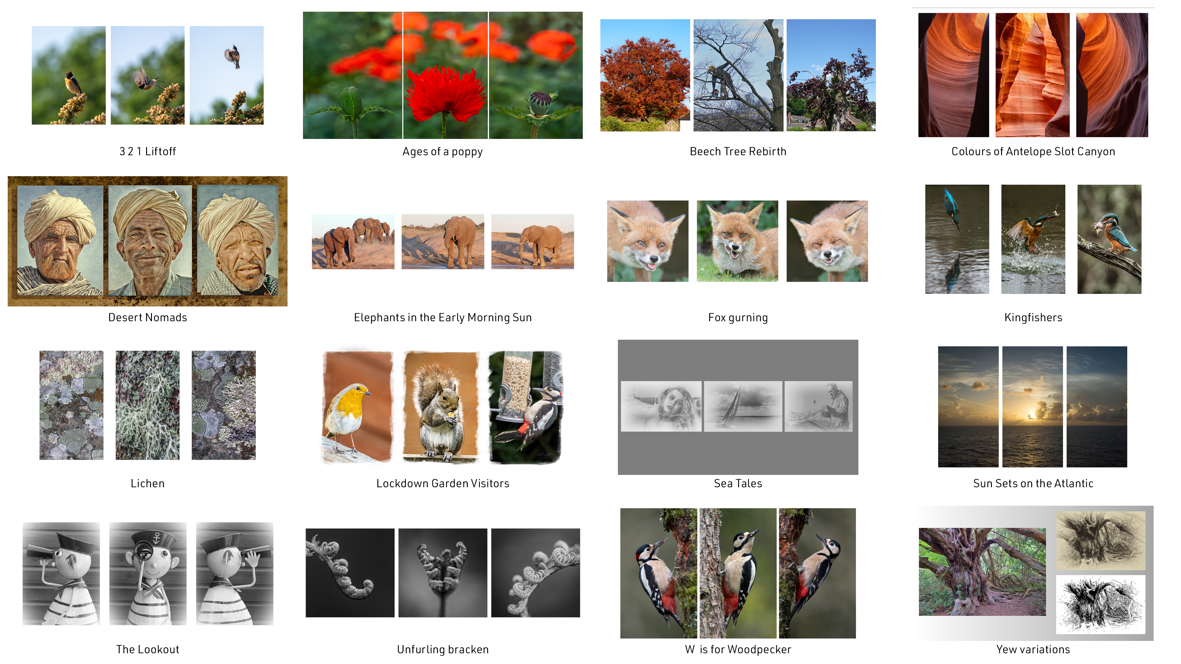 The 5th challenge for triptych. This is a set of 3 images presented together. They could be presented in any format on any theme. The placed images were: